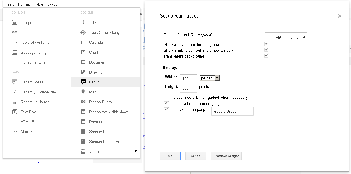 | Embedding a Google Group into a Google Site |