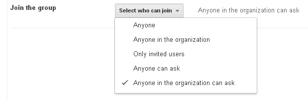 | Specify who can join a Google Group |